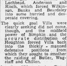 Vic Crowe's Villa lose for the fourth time under his stewardship to record one win, two draws and four defeats in his seven games and make it five wins, eleven draws and seventeen defeats in thirty three division two matches this season.