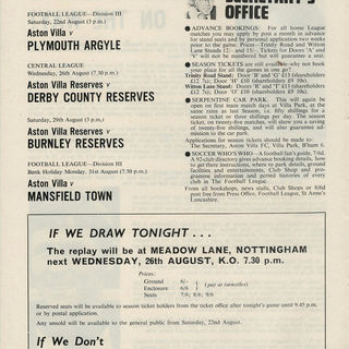 ๐ฉ 19 Aug 1970, Villa 4-0 Notts County, Villa Park