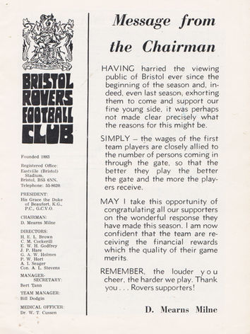 ๐จ 17 Nov 1970, Villa 1-1 Bristol Rovers, Eastville