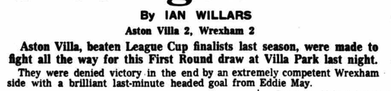 ๐จ 18 Aug 1971, Villa 2-2 Wrexham, Villa Park