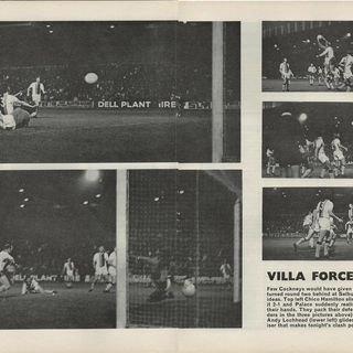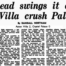 Andy Lochhead scores his tenth of the season, and sixth in the League Cup, as Villa beat first division Palace in the third round replay at Villa Park. Villa scored twice, had a clear penalty denied and Palace โkeeper John Jackson had to make spectacular saves to keep Vic Croweโs first division side at bay.