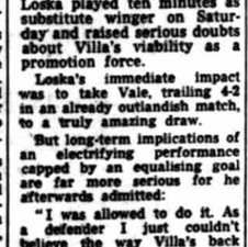 Meanwhile, forward Mick Hoban made his debut appearance in the Villa squad debut aged 19 after joining from St. Chad's College.