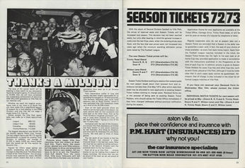 Vic Crowe's Villa make it successive wins at the end of the season to record thirty two wins, six draws and eight defeats in 46 division three games. As a result, Villa achieve a record number of wins in a single league season - 32 - and a record points haul for the Third Division - 70. Vic Croweโs Villa had simply stormed the division from November, winning 32 games and blitzing the 100 goals in a season barrier for the ninth time. Villa scored a total of 100 League and cup goals. That placed the 1971-72 campaign 9th in Villaโs 9 100+ seasons behind 1930-31 (131) 1928-29 (115) 1960-61 (112) 1912-13 (106) 1931-32 (105) 1929-30 (105) 1891-92 (102) and level with 1893-94 (100).