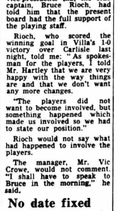 "As spokesman for the players, I told Mr. Hartley [the Villa chairman appointed after the removal of Herbert Douglas Ellis] that we are very happy with the way things are and that we don't want any more changes.