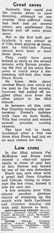 Villa, unbeaten in six, are held at the City Ground as despite running the game for 75โ lose concentration and allow Forest to equalise and share the points. As a result Villa fall back to joint third in the table with one game in hand over second placed Wednesday and two games in hand on new leaders Burnley - the side who have inflicted Villaโs only defeat this season.