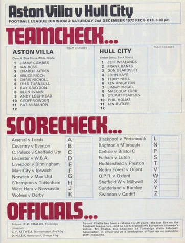 ๐ฉ 2 Dec 1972, Villa 2-0 Hull, Villa Park