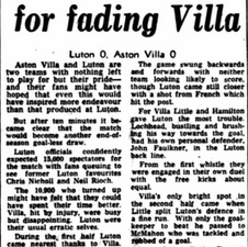 Vic Crowe's Villa make it four unbeaten but are held to a goal-less draw by Luton. As a result, Villa make it seventeen wins, thirteen draws and nine defeats in thirty nine League games. With just six points left to play for, Villa's bid for a second successive promotion is over.