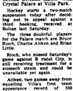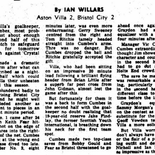 ๐จ 20 Oct 1973, Villa 2-2 Bristol City, Villa Park