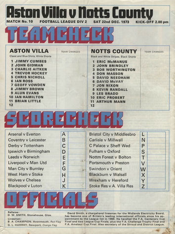 ๐จ 22 Dec 1973, Villa 1-1 Notts County, Villa Park
