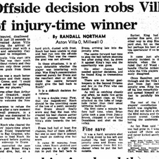 Villa, winless in nine, with just three points and three goals from those matches are held to a goalless draw by fellow strugglers Millwall and relegation is linked with Vic Croweโs side after the first game of 1974. Villa though they have climbed a place to joint 13th in the table are now seven points off the final promotion place and just six off the final relegation place.