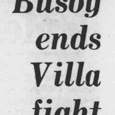 48th minute: Barrettโs run down the right takes him through the Villa cover, Cumbes misses the cross and John Gidmanโs half clearance allows Busby a tap-in goal;