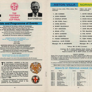 The Villa were unsuccessful there in another League Cup final a few years ago but this time they will be eager to beat their Second Division rivals, Norwich City, to clinch the trophy.