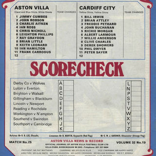 ๐ฉ 9 Apr 1975, Villa 2-0 Cardiff, Villa Park