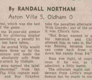 Had he scored Villa would have been three up by the 36th minute and made the game absolutely safe from counter-attack by Oldham.