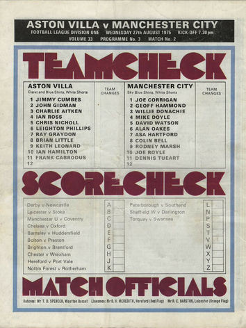 ๐ฉ 27 Aug 1975, Villa 1-0 Manchester City, Villa Park