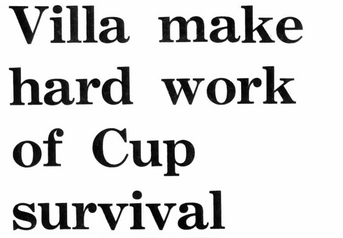 Villa beat their league rivals from division two in the second round of the League Cup thanks to goals from Keith Leonard and Chris Nicholl. Leonard scored his third of the season just as the crowd were demanding the youngsters removal.