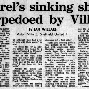 Sirrel suggested that United might well have been 3-1 up at the interval if they had accepted their chances against Villaโs shaky defence which is still giving cause for concern. And he was right. But the former Notts County manager admitted that after half-time Villa were In a different class.