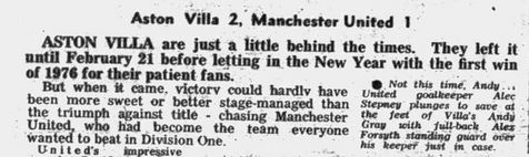 Villa win for the first time in 1976 as Brian Little returns to the Villa Park stage after his long injury absence and inspires Villa to victory over Manchester United as Bobby McDonald and Andy Gray get the crucial goals.