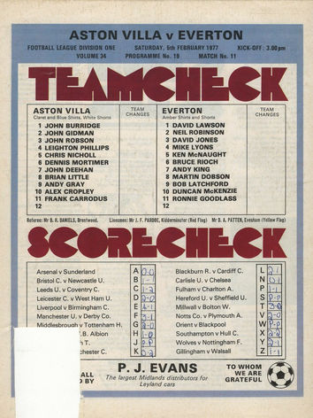 ๐ฉ 5 Feb 1977, Villa 2-0 Everton, Villa Park