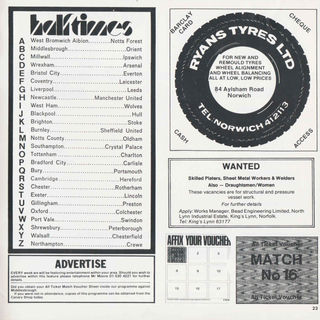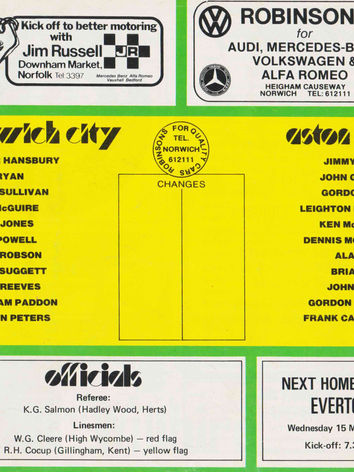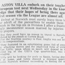 John Gregory scores his first for Villa and the returning John Gidman nearly grabs the equaliser in the dying seconds but Villa are undone on the eve of their UEFA Cup Quarter Final by a disputed penalty at Carrow Road.