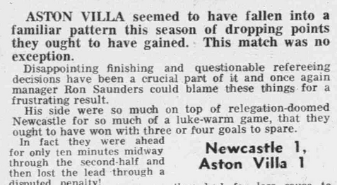 ๐จ 8 Apr 1978, Villa 1-1 Newcastle, St James'