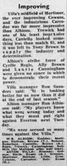 Villa hammer Albion at the Hawthorns and manage to come out of the match unscathed after the appallingly aggressive display from the hosts earlier in the season.