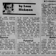 Villaโs goal came however from a delightful move with Brian Little sending Gidman away down the right. The full back sent in a smart cross and Cowans prodded the ball forward for Shelton to score with a powerful drive.