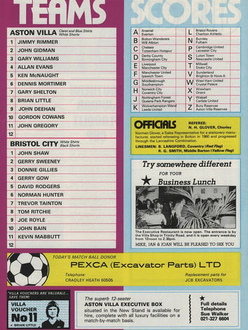 ๐ฉ 18 Nov 1978, Villa 2-0 Bristol City, Villa Park