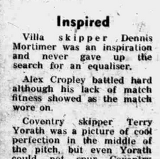 Villa face, and ๐จ draw, with Coventry for the second time in three games taking a fortunate point after centre back Allan Evans ๐ด๓ ง๓ ข๓ ณ๓ ฃ๓ ด๓ ฟ is ๐ฅ sent off for the second time this season just before half time for a head butt in retaliation for Coventry's physical provocations.