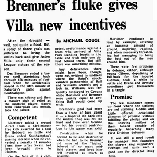 Any deficiencies there might have been, though were not evident in midfield where the Saint's much vaunted partnership of Ball and Williams scarcely got a look in. Williams was frequently outplayed by Cowans while Mortimer and Bremner were usually equal to anything Ball could come up with.