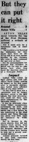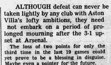 Villa fall 0-3 behind before a Dennis Mortimer ๐ด๓ ง๓ ข๓ ฅ๓ ฎ๓ ง๓ ฟ consolation at Highbury leaves them joint sixth in the table after 25 games but with games in hand on the teams around them.