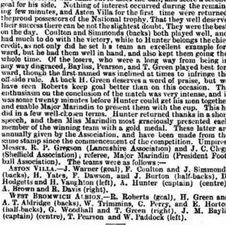 "The Albion men themselves exhibited an overweening confidence as to the result. They resented, with angry disdain, any hint that after all their opponents had an outside chance, and a prediction that the Villa would win was regarded as a deliberate insult, probably actuated by corrupt motives."