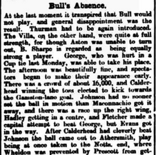Thurman was voted to be a good substitute, seeing that Bull had been under the special care of Dr. Wharton Hood, the eminent London specialist, and who, only on Friday had expressed the opinion that Bull would be able to resume his old place in the team.