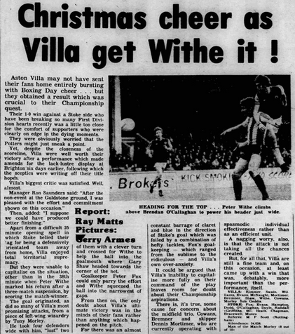 After three games out due to suspension Peter Withe ๐ด๓ ง๓ ข๓ ฅ๓ ฎ๓ ง๓ ฟ returns to hit the winner - his eighth goal of the season.