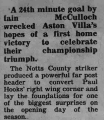 Reigning Champions Villa open 1981-82 with a defeat to Notts County at Villa Park.