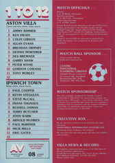 Villaโs recent bogey side and runners up to the reigning champions in last seasonโs first division, Ipswich, inflict a fourth successive defeat on Ron Saundersโ side as a โpeculiarโ refereeing performance sees Villa beaten for the first time in fifteen games.