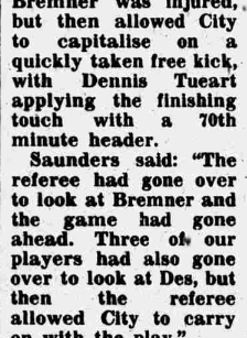 โDes Bremner need four stitches in his scalp yet City were allowed to take the free kick.โ