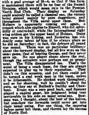 The Villa time after time got dangerous, but Devey, Johnson, and Athersmith, though each shot and played brilliantly, could not get near enough the North End goal to manage its downfall.