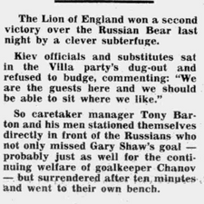 Villa deliver a complete European performance to beat Dynamo Kiev ๐บ๐ฆ in the quarter finals of the European Cup as Tony Barton ๐ด๓ ง๓ ข๓ ฅ๓ ฎ๓ ง๓ ฟ delivers again, extending his unbeaten run to seven.
