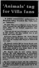 โWhile Villa will be anxiously awaiting the report of the European Football Union's observer, I understand he is sympathetic towards the club's view that there was little they could do about it. They had no control over fans who were outside the club party and the late sale of tickets [by Anderlecht] made segregation inside the stadium impossible.โ