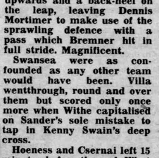 Assist(s) | Peter Withe | 38' | Dennis Mortimer | 44' | Kenny Swain | 63' |