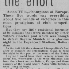 Aston Villa champions of Europe. Now truly a great club again. Still that GREAT.