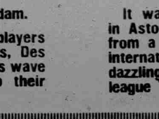 Shaw beat Dremmier on the right and Morley, taking the path with a disco-dancerโs hip wiggle, passed along Augenthaler, skidded the ball along the line to the six-yard area for Withe to prod in by way of goalkeeper Muller and the post to score.