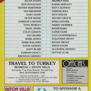 ๐ฉ 15 Sep 1982, Villa 3-1 Beลiktaล, Villa Park