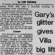 Tony Barton's Villa hammer Ipswich at Villa Park to make it nine wins, four draws and five defeats in eighteen League games this season.