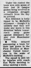 โIn those five years [since Villa won the European Cup], the Chairman [Ellis] has changed the manager three times [Barton, Turner, McNeill] and the first team squad almost totallyโฆ Ellis should be careful about making [McNeill] a sacrificial victim.โ