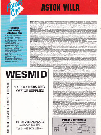 ๐จ 9 Apr 1988, Villa 1-1 Palace, Selhurst