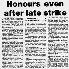 "Villa had to settle for their fourth draw after taking the lead in the 22nd minute with a Kevin Gage shot which skidded underneath Steve Sutton."