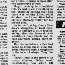 Villa came to life after a subdued start to the second half when Price streaked clear on the right but his cross was hacked away by Vince Overson.