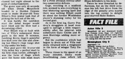 Derek Mountfield beat him with a header in the first minute after Gordon Cowans destroyed the defence with a curling cross.